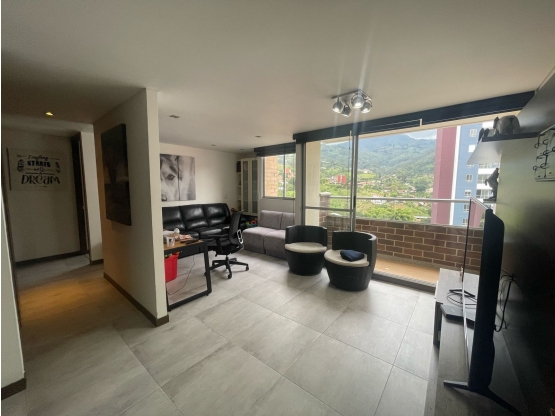 86 M2 distribuidos en 2 alcobas con posibilidad de la tercera, salón comedor con balcón, estudio, cocina integral abierta con mesón en quarztone, 2 baños con cabina en vidrio templado, piso en porcelanato, zona de ropas idependiente, red de gas, calentador, parqueadero doble lineal y cuarto útil.